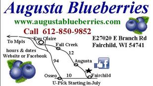 Call us at 612-850-9852 © copyright Augusta Blueberries - 2025 E27020 E Branch Rd Fairchild WI 54741